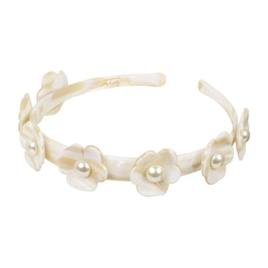 Create a graceful look for both parties and casual occasions with the Camellia Pearl 1.5 cm White Alba Alice Band. Embellished with delicate camellia flowers, this sophisticated headpiece offers a snug, comfortable fit with smooth, curved ends. Expertly handcrafted in France from premium Italian cellulose acetate, it is meticulously hand-set by our skilled artisans with Swarovski pearls.
