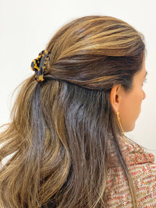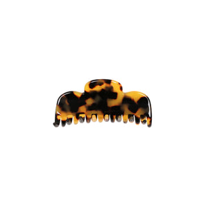 Elevate your traditional up-do using the Alex Small Dark Tortoiseshell Claw Clip. Carefully designed with a strong spring, this glossy accessory effortlessly features a conveniently small size, and an elegant, great design that will allow you to use with sections of hair, or for short, thin hair, due to its strong grip. Immerse yourself in the timeless allure of its sleek glossy finish, achieving a luxurious look that harmonizes with your personal style.