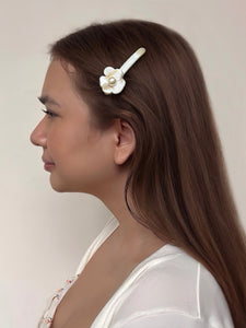 Elevate your everyday look with the Camellia Crystal Large White Alba Side Hair Clip — a perfect blend of elegance and functionality. Designed to effortlessly transition from casual to formal occasions, this versatile clip is ideal for pinning back side sections, taming bangs, or adding a polished touch to half-up hairstyles. It keeps shorter strands in place while adding a subtle yet sophisticated accent to your look. Crafted for a secure and comfortable hold, the clip gently grips the hair without pulling or snagging, making it suitable for all hair types. Expertly handcrafted in France from premium Italian cellulose acetate, it is meticulously hand-set by our skilled artisans with Swarovski crystals and delicate micro beads.