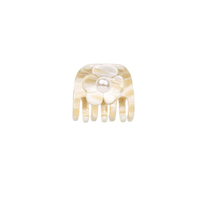 Secure your hair in style with the Camellia Pearl Medium White Alba Claw Clip, featuring delicate camellia flowers. Suitable for all hair types, its strong spring provides a comfortable, secure hold throughout the day. Expertly handcrafted in France from premium Italian cellulose acetate, it is meticulously hand-set by our skilled artisans with a Swarovski pearl.