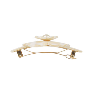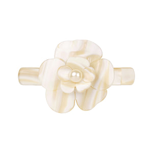 Add a touch of sophistication to your hairstyle with the Camellia Pearl Medium White Alba Hair Clip, adorned with a graceful camellia flower. Perfect for securing ponytails or half-up styles, its strong fastening ensures a comfortable and secure hold all day long. Expertly handcrafted in France from premium Italian cellulose acetate, it is meticulously hand-set by our skilled artisans with a Swarovski pearl.