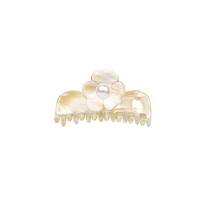 Secure your hair in style with the Camellia Pearl Small White Alba Claw Clip, featuring delicate camellia flowers. Suitable for all hair types, its strong spring provides a comfortable, secure hold throughout the day. Expertly handcrafted in France from premium Italian cellulose acetate, it is meticulously hand-set by our skilled artisans with a Swarovski pearl.