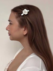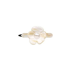 Elevate your everyday look with the Camellia Pearl Small White Alba Side Hair Clip — a perfect blend of elegance and functionality. Designed to effortlessly transition from casual to formal occasions, this versatile clip is ideal for pinning back side sections, taming bangs, or adding a polished touch to half-up hairstyles. It keeps shorter strands in place while adding a subtle yet sophisticated accent to your look. Crafted for a secure and comfortable hold, the clip gently grips the hair without pulling or snagging, making it suitable for all hair types. Expertly handcrafted in France from premium Italian cellulose acetate, it is meticulously hand-set by our skilled artisans with a Swarovski pearl.
