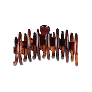 The Christina Medium Tortoiseshell Claw Clip, made from durable Cellulose Acetate, features a covered spring and a sleek lacquer-coated finish. It’s designed to securely hold your hair up in a bun or gather a section of your hair with ease.