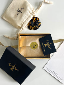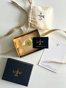 Your chosen item is nestled in a soft, elegant pouch and presented within our signature keepsake box, a timeless piece crafted to be cherished long after the unboxing. A shimmering golden label and luxe golden ribbon closure lend an air of quiet opulence, setting the tone for what’s inside. A customized message card accompanies each gift, allowing you to share a heartfelt note in your own words — perfect for adding a personal touch to any occasion.