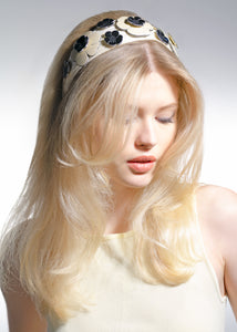 Exude timeless grace with the St. Tropez Camellia Pearl Flowers Black Fascinator. Adorned with delicate camellia flowers, this refined headpiece is designed to make an elegant statement with subtle sophistication. The sleek metal securement around the ear ensures a snug, comfortable fit, allowing you to wear it with ease throughout any event. Expertly handcrafted from natural buntal fabric and premium Italian cellulose acetate, it is meticulously embellished by our skilled artisans with hand-set Swarovski pearls. Perfect for weddings, garden parties, or any special occasion where elegance takes centre stage.
