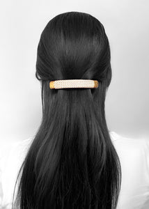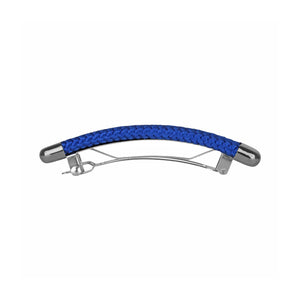 The Tressa Blue Hair Clip is meticulously designed to elevate your ponytail with timeless elegance. Crafted from French haute couture tresses fabric, this clip is a masterpiece woven by skilled artisans on wooden looms, showcasing a subtle shine and the intricate beauty of robust braids. This luxurious fabric, with its rich heritage, is paired with a high-quality metal clip, ensuring a secure and comfortable hold without exerting pressure on your hair. Perfectly versatile, this hair clip effortlessly complements both casual and formal outfits, making it an exquisite addition to any wardrobe.