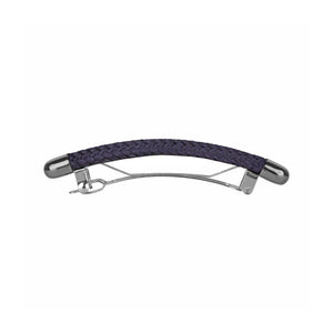 The Tressa Navy Hair Clip is meticulously designed to elevate your ponytail with timeless elegance. Crafted from French haute couture tresses fabric, this clip is a masterpiece woven by skilled artisans on wooden looms, showcasing a subtle shine and the intricate beauty of robust braids. This luxurious fabric, with its rich heritage, is paired with a high-quality metal clip, ensuring a secure and comfortable hold without exerting pressure on your hair. Perfectly versatile, this hair clip effortlessly complements both casual and formal outfits, making it an exquisite addition to any wardrobe.