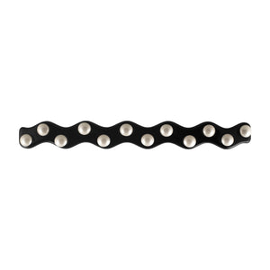Add a touch of sophistication to your hairstyle with the Zig Zag Pearl Black Hair Clip. Perfect for securing ponytails or half-up styles, its strong fastening ensures a comfortable and secure hold all day long. Expertly handcrafted in France from premium Italian cellulose acetate, it is meticulously hand-set by our skilled artisans with Swarovski pearls.