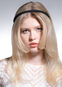 The elegant Celine 1 cm Blue Headband is handcrafted from French haute couture soutache fabric, offering a subtle shine and luxurious feel. Meticulously crafted on wooden looms by artisans and designers to create robust but intricate braids, the soutache designs of this headband are the ultimate display of traditional French craftsmanship and haute couture. The high-quality metal ends ensure a comfortable fit, sitting smoothly on the hair. This stylish accessory effortlessly complements both casual and formal outfits.